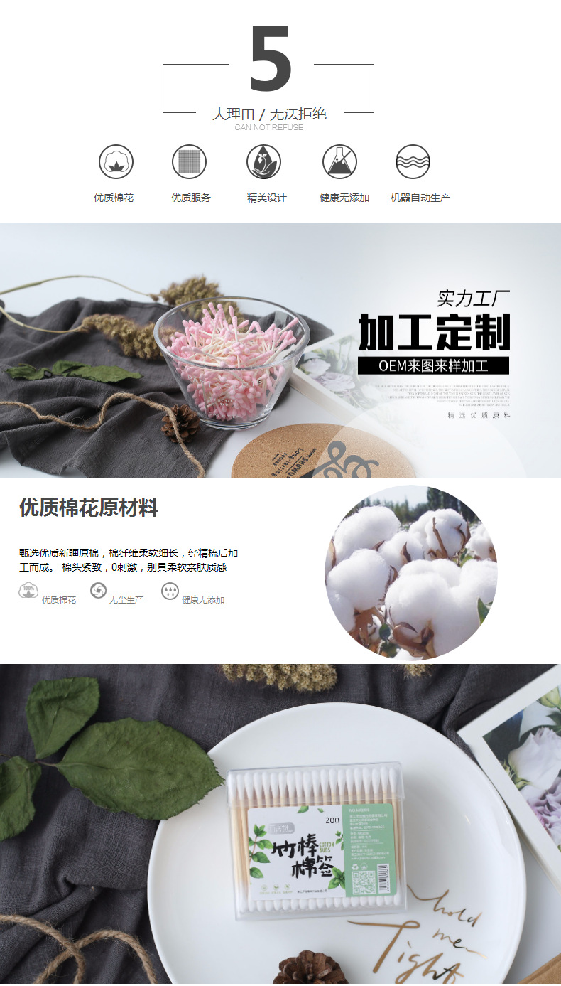 节洁雅200支竹化妆棉一次性卫生棉签双头棉棒灌装棉棒MQ009 English | 投诉