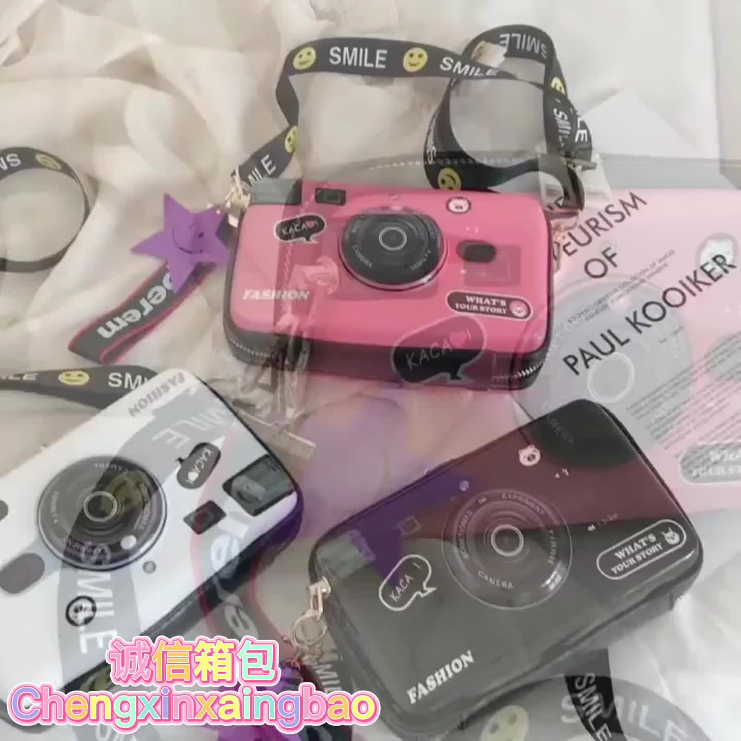 化妆包ABS百搭单肩斜跨包女潮酷相机造型包包彩色盒子手机包 English | 投诉