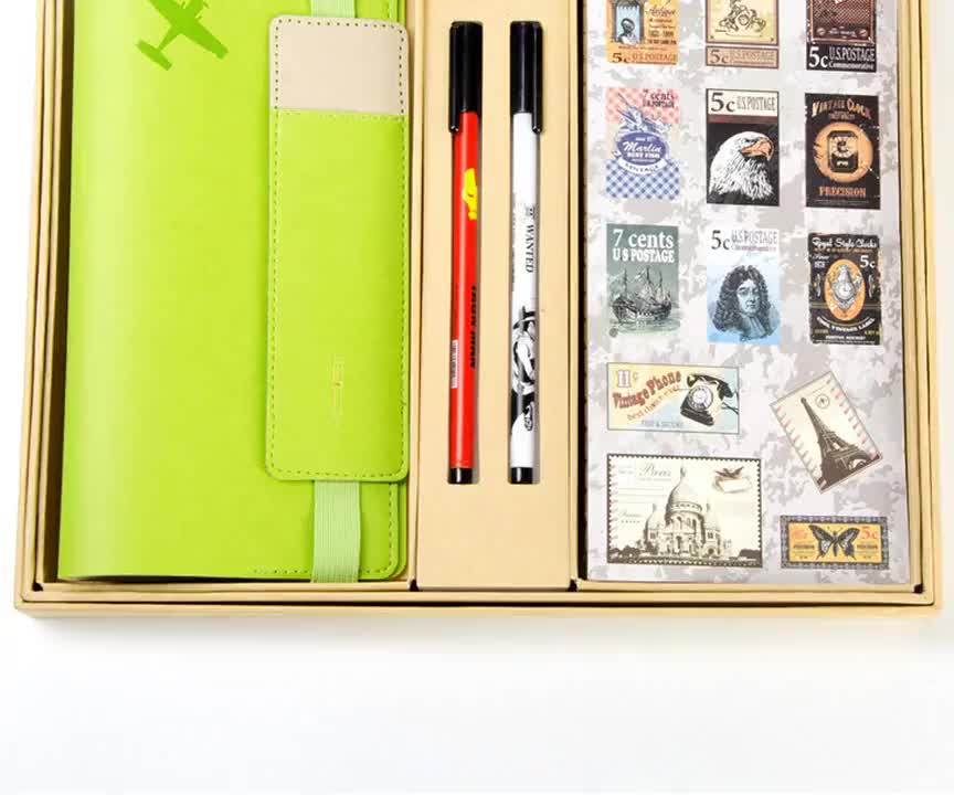 【 博文 】旅行本皮面随身记事笔记本礼盒7件套装礼品定制LOGO