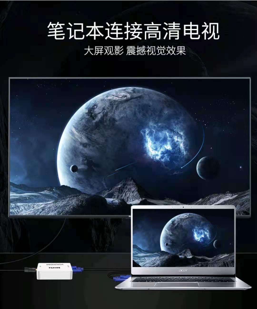 VGA转HDMI高清VGA TO HDMI转换器1080p迷你VGA2HDM电视盒