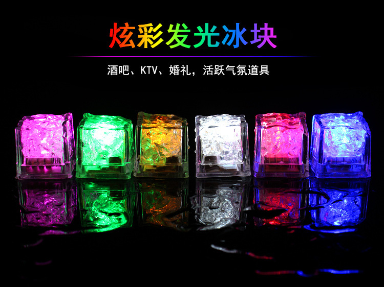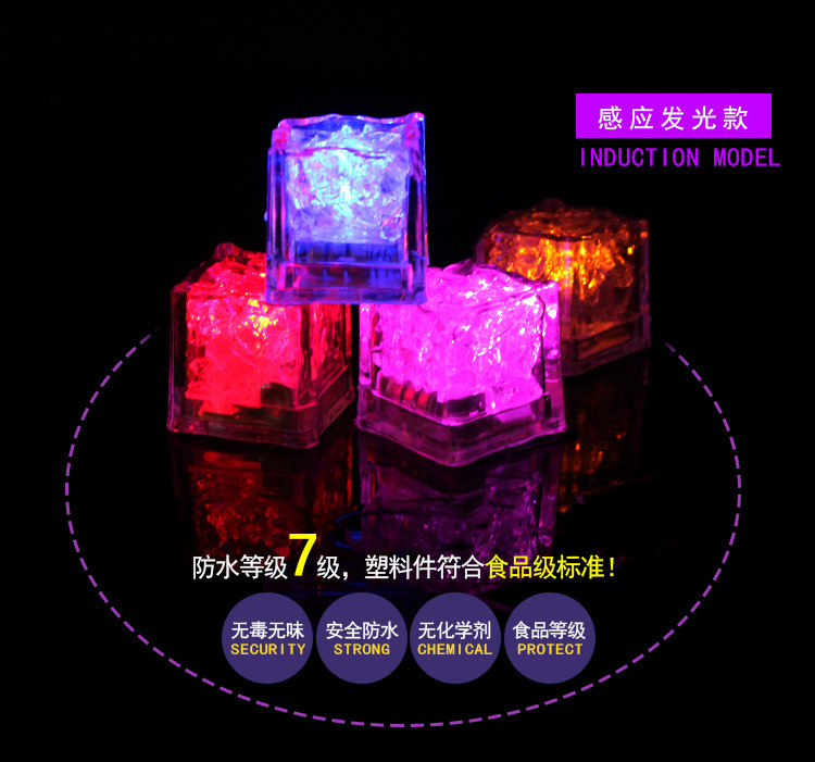 特性描述 采用食品级PS材料及电子元件组成的发光冰块,具有入水即亮的特性(液体感应),外型彷如真实冰块一般。产品采用电池供电,无化学变化,可放置于各类饮品中增添浪漫及神秘的气氛。广泛用于各类喜庆 活动或者酒店酒吧等等场所。