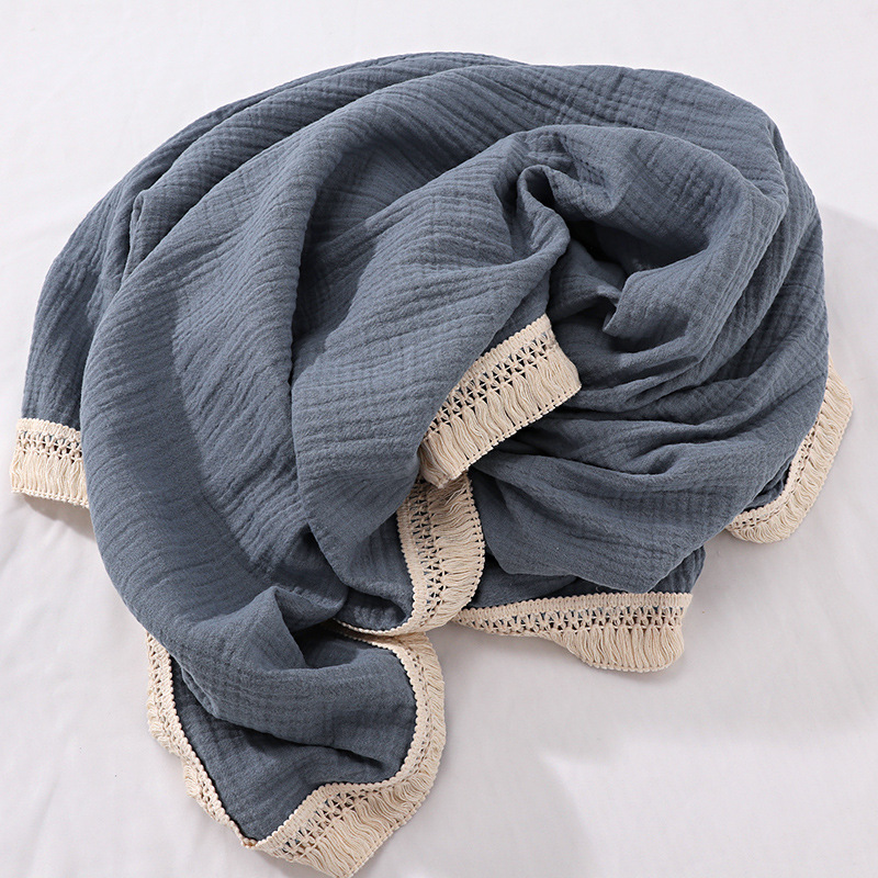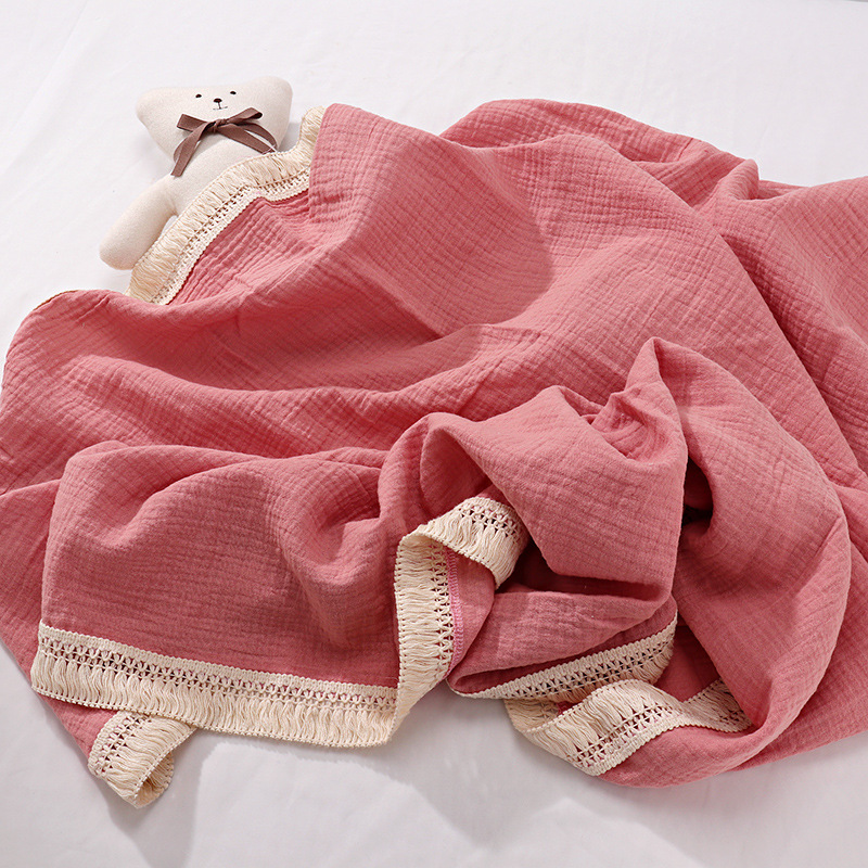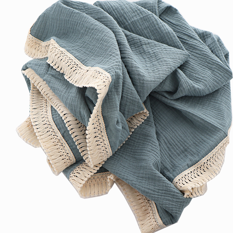 ins流苏儿童盖毯子婴儿纱布包巾抱被新生宝宝用品包被 包裹巾