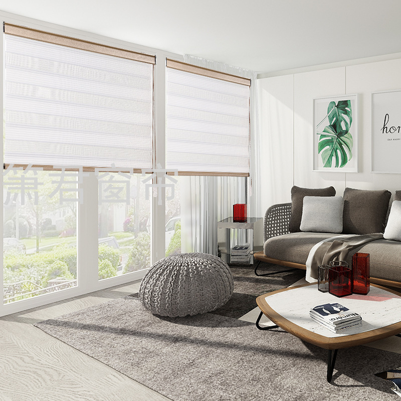 厂家直营工厂价素色纯色遮光百叶窗帘柔纱帘办公家居窗帘日夜帘 投诉