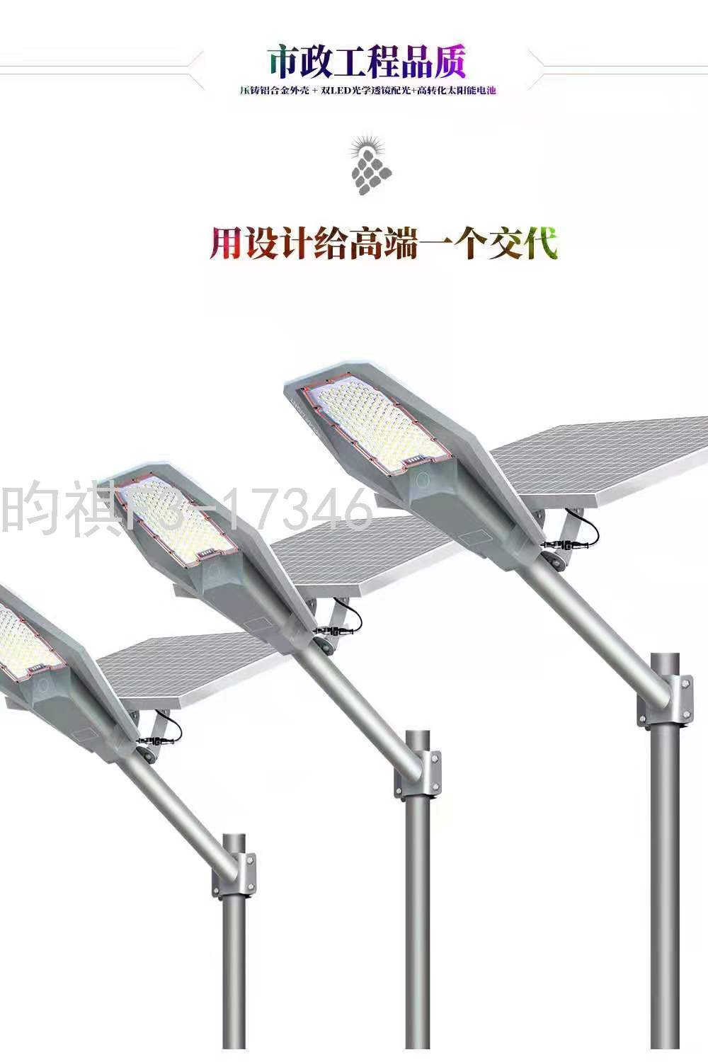 产品特点:高亮LED灯珠,照明范围广。高品质太阳能板,充电快,效率高。智能光控全自动,白天自动充电,晚上自动亮灯,低耗能,0电费。户外防雨防雷。免布排线,安装方便,节能环保。阴雨天不断电。
