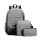新款时尚男士商务双肩包 大容量旅行包USB背包潮流三件套学生书包