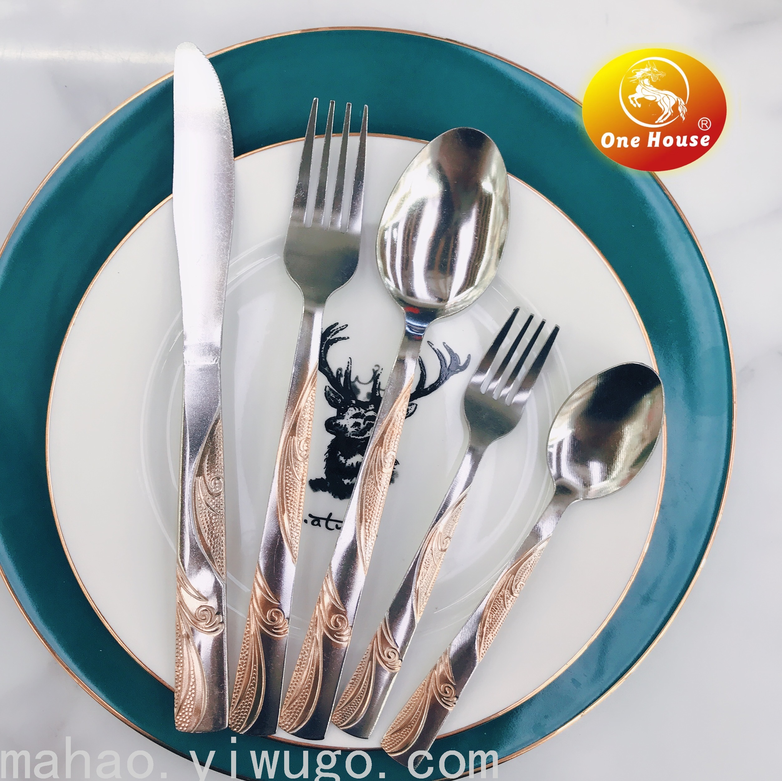 不锈钢镀金柄机抛刀叉勺小勺叉