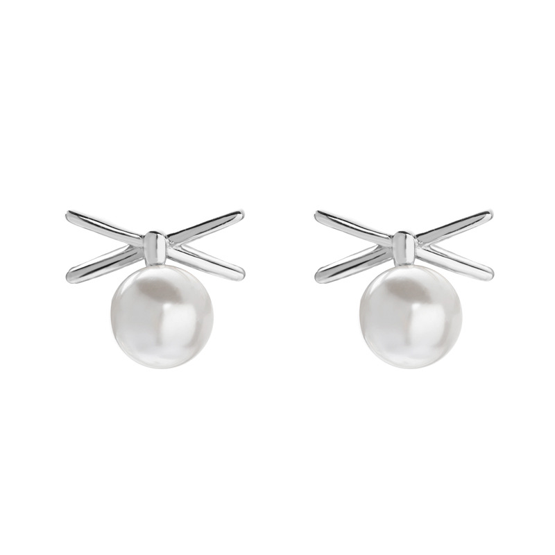 交叉珍珠耳钉女s925银基础款简约贝珠耳饰迷你气质 English | 投诉