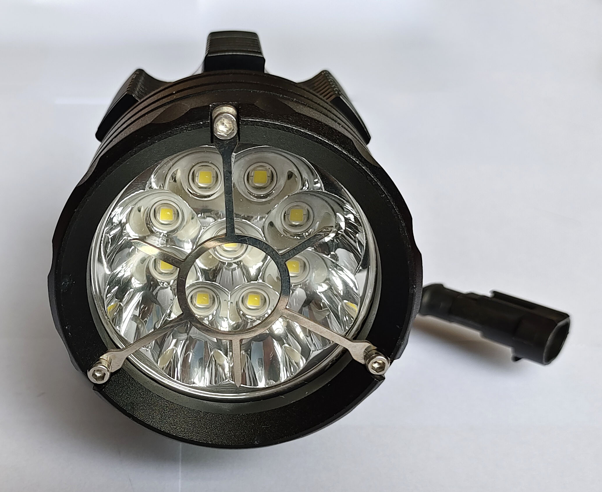 摩托车大灯圆形铝壳9灯反光杯款12-48V 大功率灯珠 2线 外置