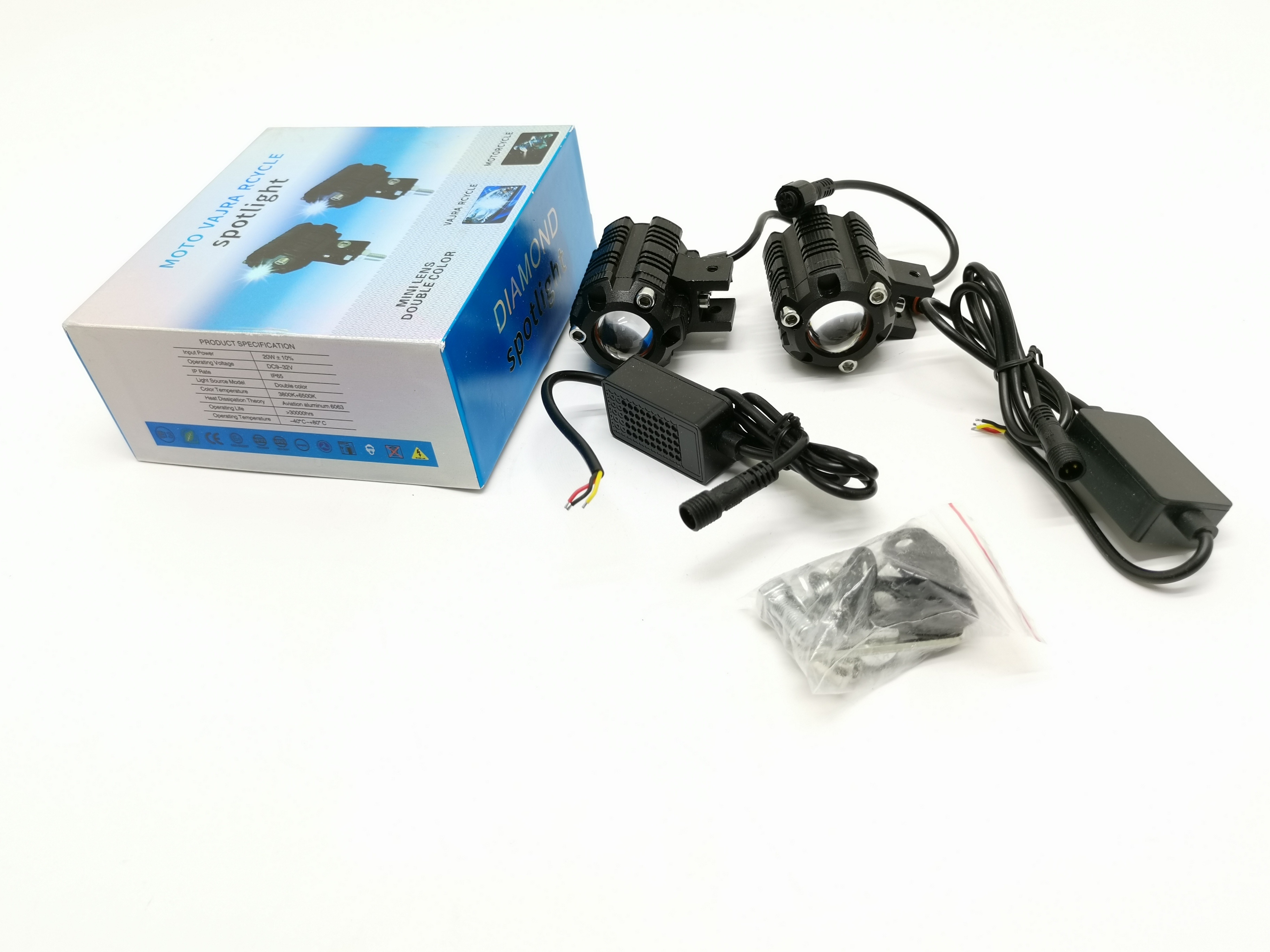 摩托车大灯 圆形 1灯 大功率灯珠 双天使眼 塑壳 3线 万向支架