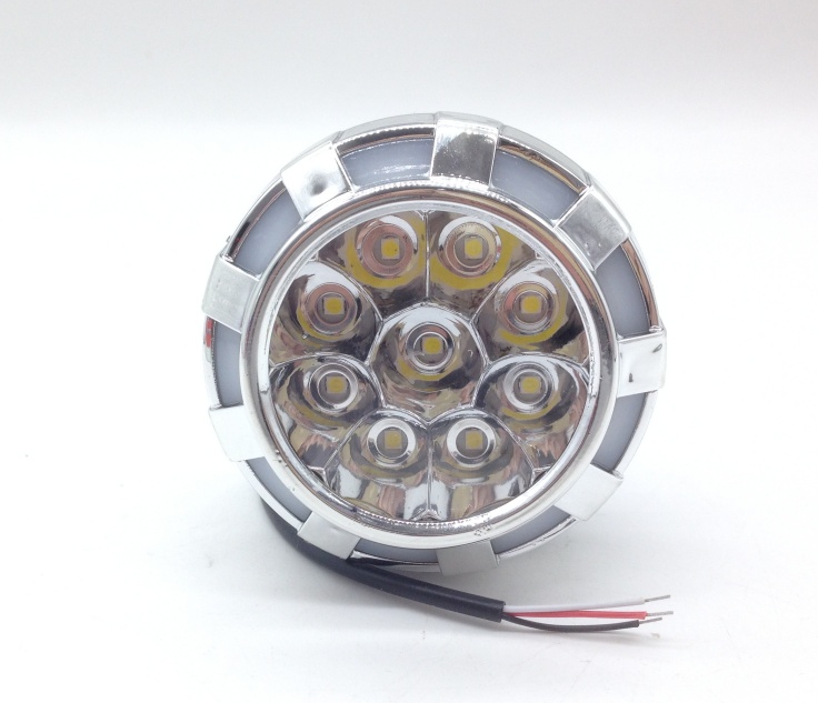 摩托车大灯椭圆形6灯塑壳+塑料常亮6W白光万向支架12V3线