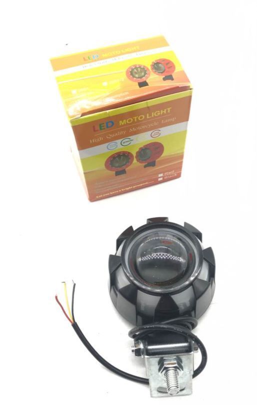 摩托车大灯圆形1灯铝壳白光大功率灯珠固定支架七彩天使圈12V3线