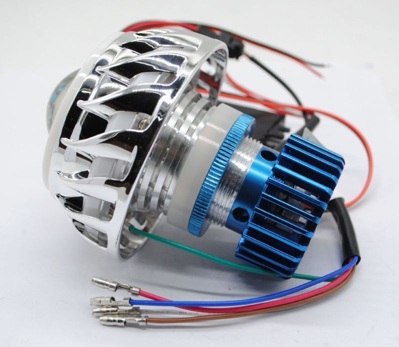 摩托车大灯圆形1灯18W铝壳白光大功率灯珠天使圈常亮5线12-85V