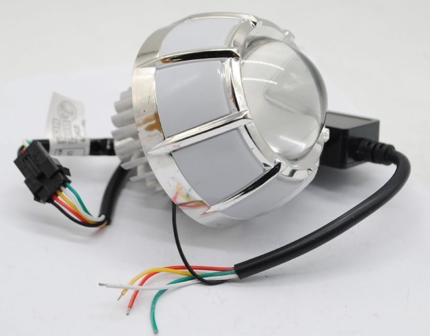 摩托车大灯圆形1灯30W铝壳白光大功率灯珠天使圈常亮5线12-80V