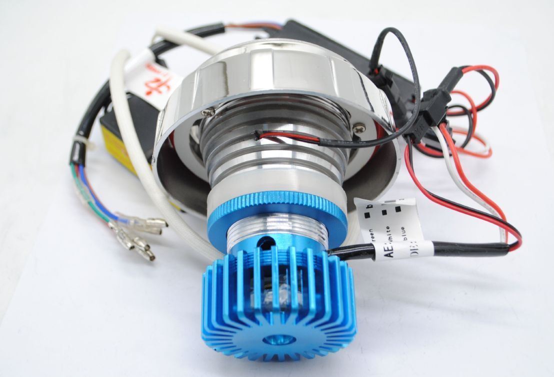摩托车大灯圆形1灯18W铝壳白光大功率灯珠天使圈常亮7线12V