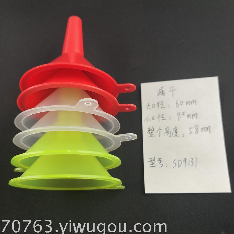 欢迎来我的网店,真诚为你服务,这是一款用优质PP塑料做成的塑料漏斗,可以通过测试,产品尺寸:上口直径60MM,下口直径9.5MM,整个高度:58MM,颜色为透明,红色,等,如客户需要别的颜色,数量多,也可以为客人定制颜色,在家居,学生实验等用处多的,500个起定,欢迎有需要的单位前来采购,价格优惠,发货快,质量好,数量足,产品的型号是:SD9131,谢谢惠顾。更新时间:2025-09-06 09:46