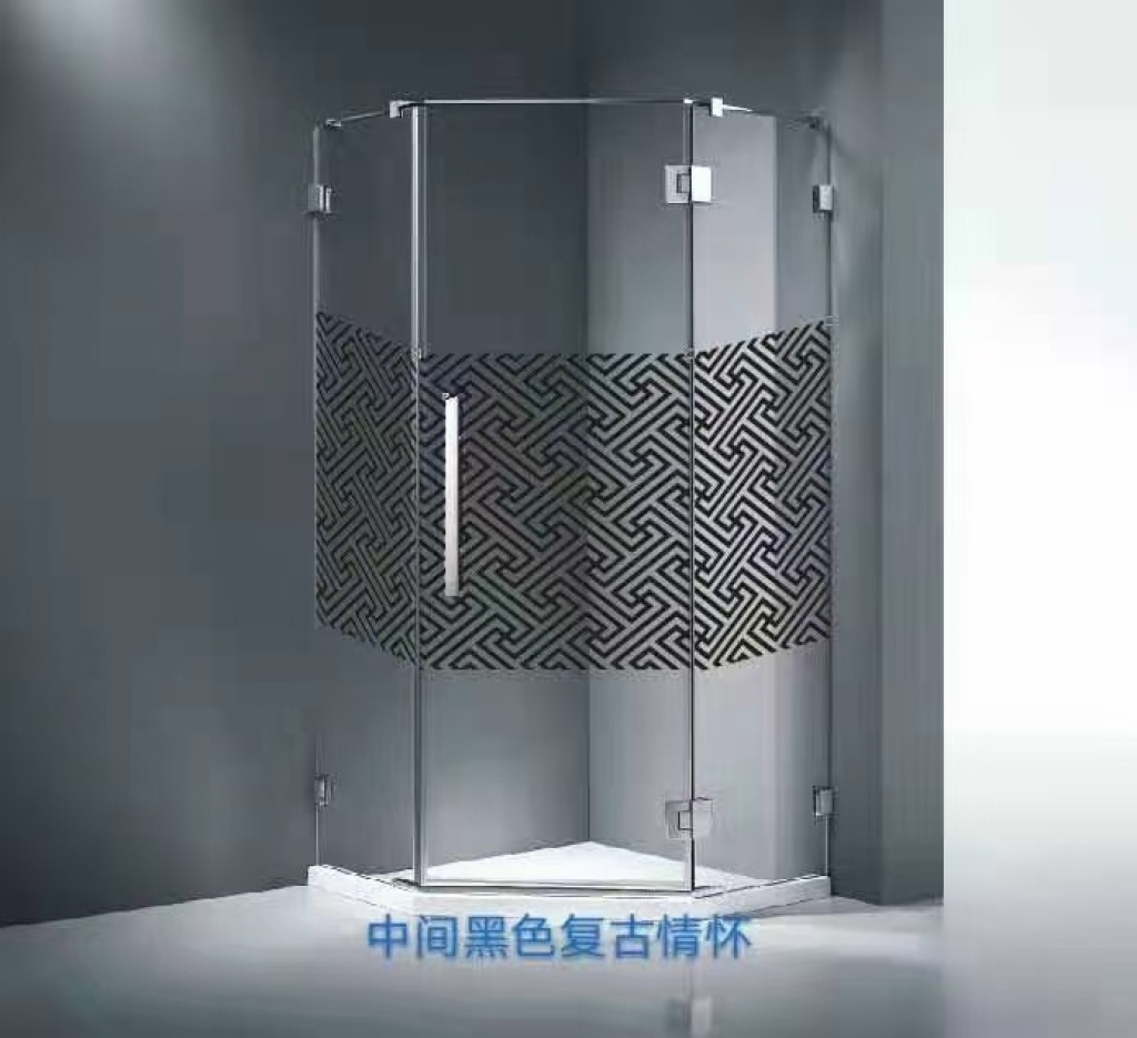 私人定制淋浴房出口非洲南美中东淋浴房渐变色蒙砂钢化玻璃花纹