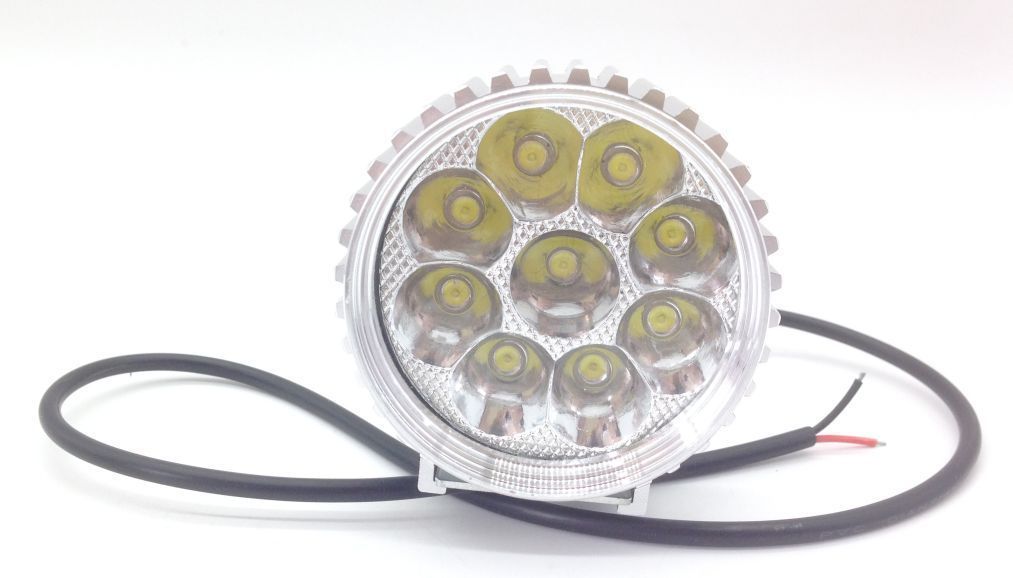 摩托车大灯圆形21灯21W铝壳银色白光常亮3030灯珠12V2线