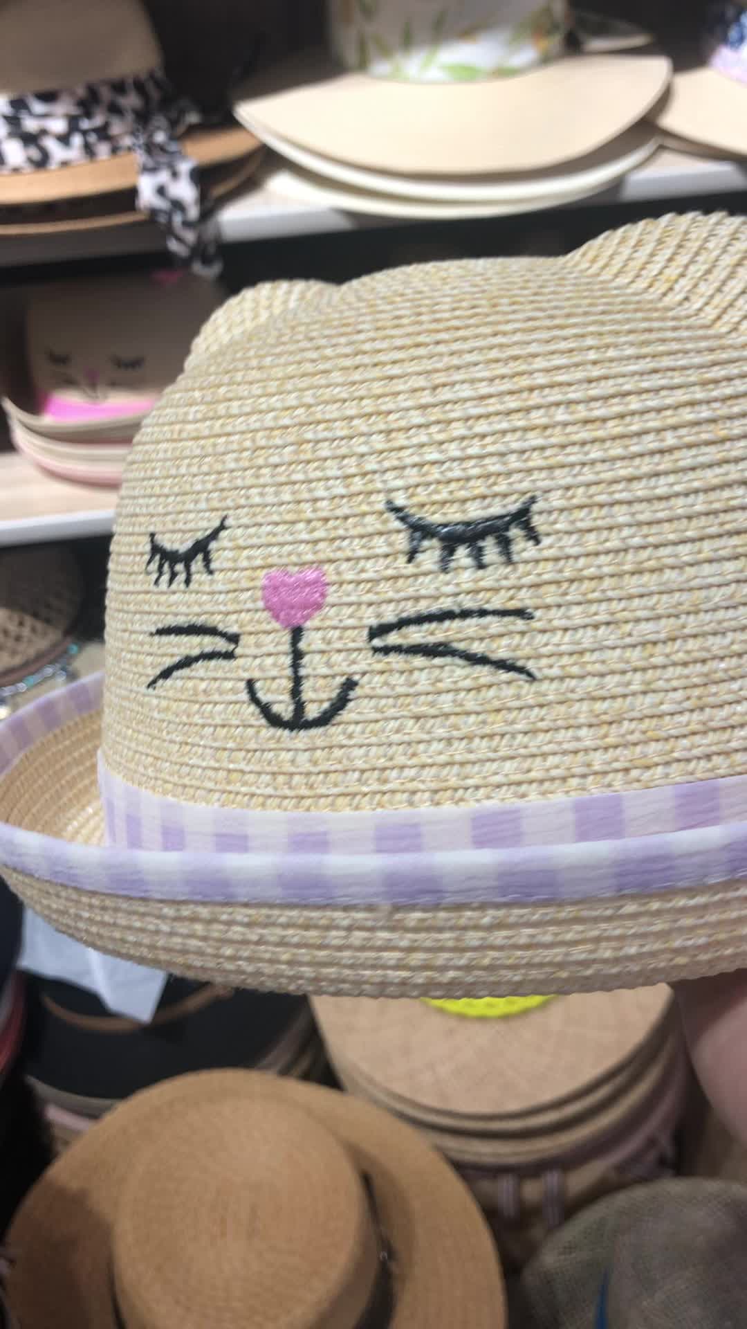 儿童小猫刺绣格子装饰夏款草帽欧美时尚高品质儿童帽 English | 投诉