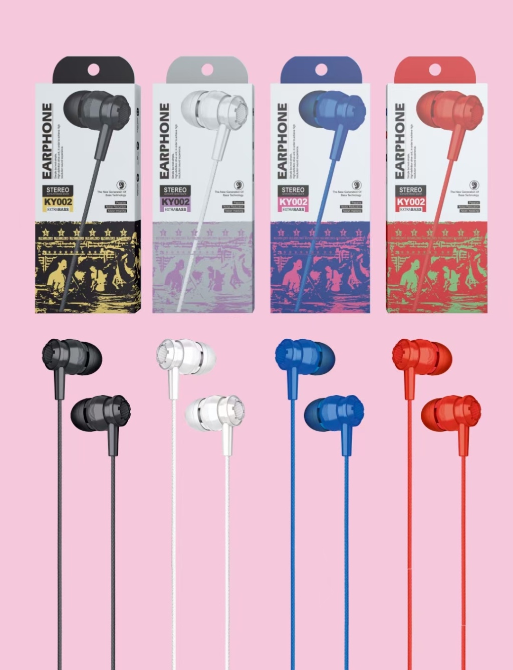 入耳式手机耳机线控有线耳机重低音彩色好音质高档彩盒包装耳机