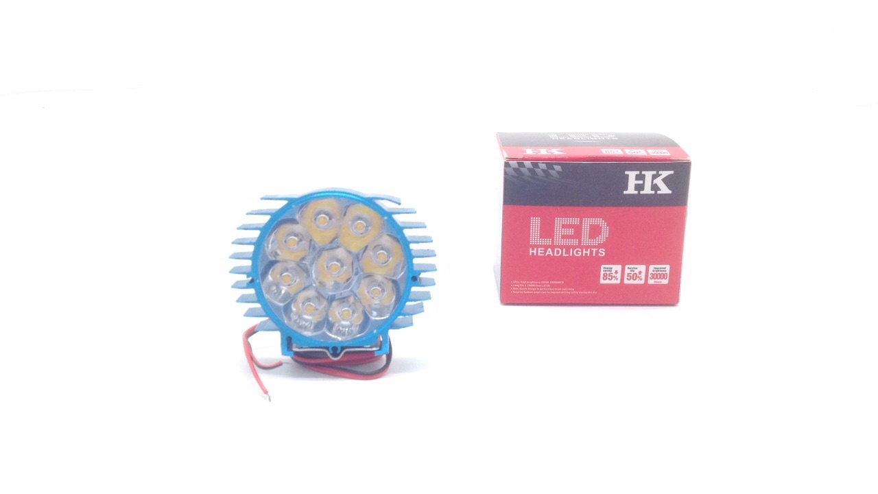 摩托车大灯圆形9灯12W多色白光常亮2835灯珠12-80V2线
