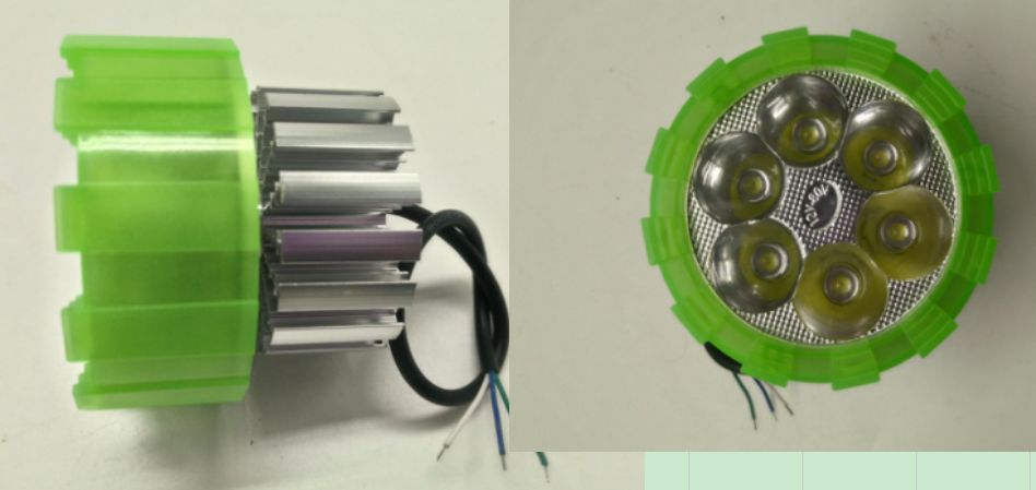 摩托车大灯圆形6灯10W绿银色白光常亮3030灯珠12-85V3线