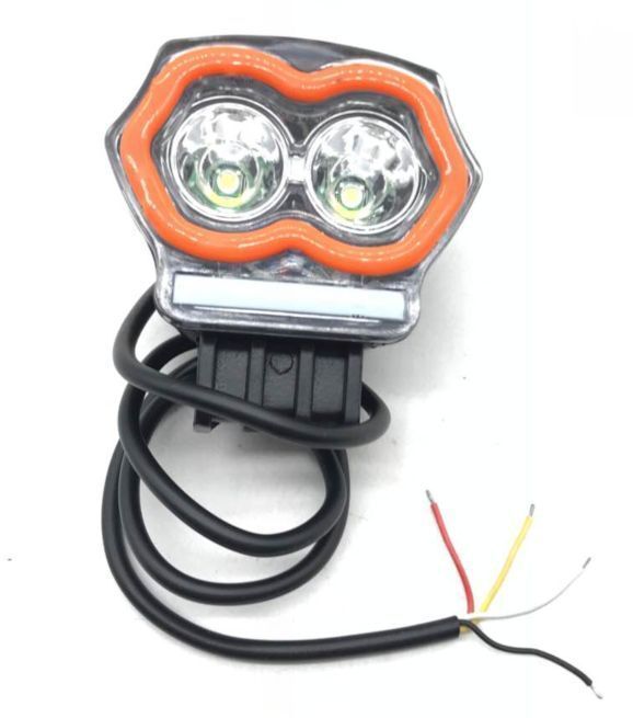 摩托车大灯2灯6W铝壳黑色固定支架大功率灯珠白光常亮4线