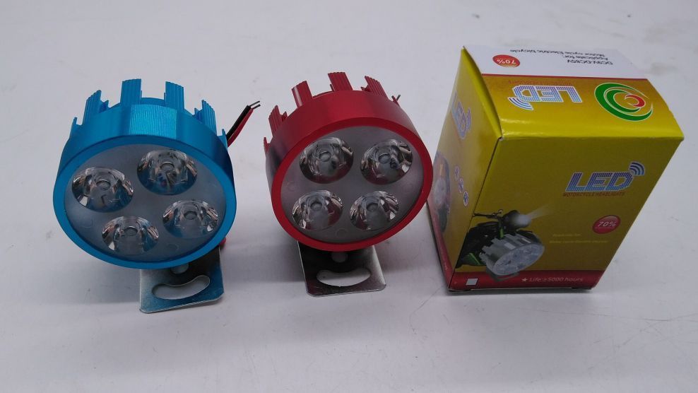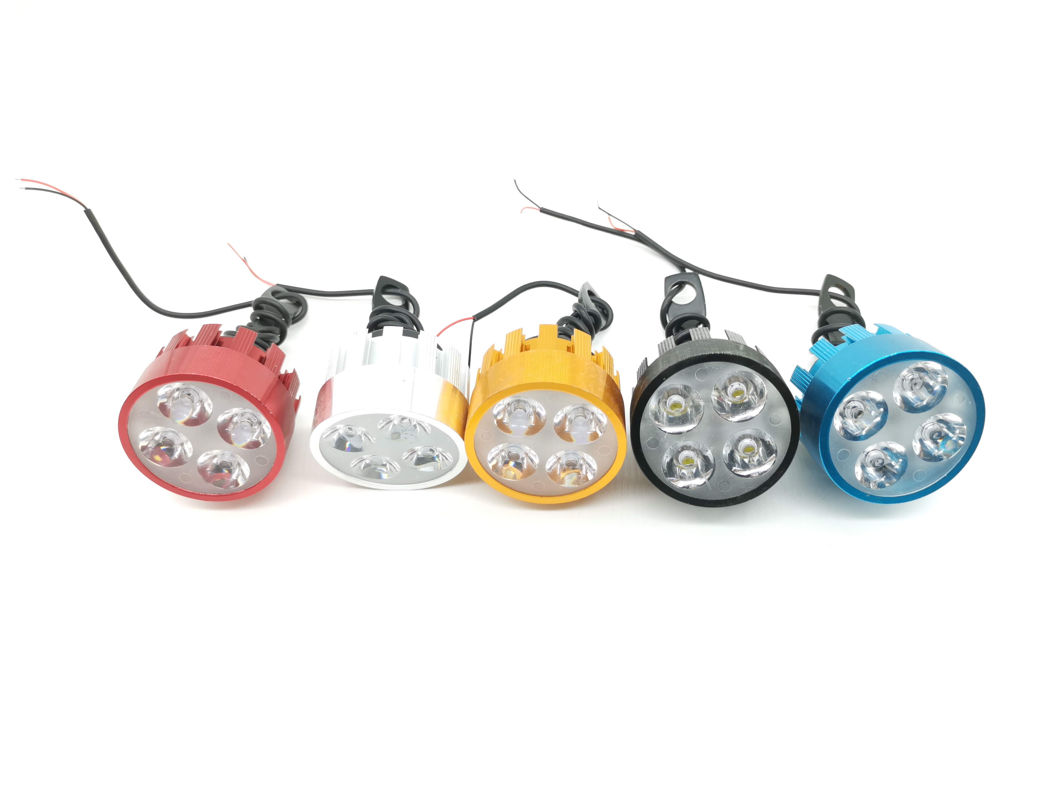 摩托车大灯4灯12W铝壳多色固定支架3030灯珠白光常亮12V2线