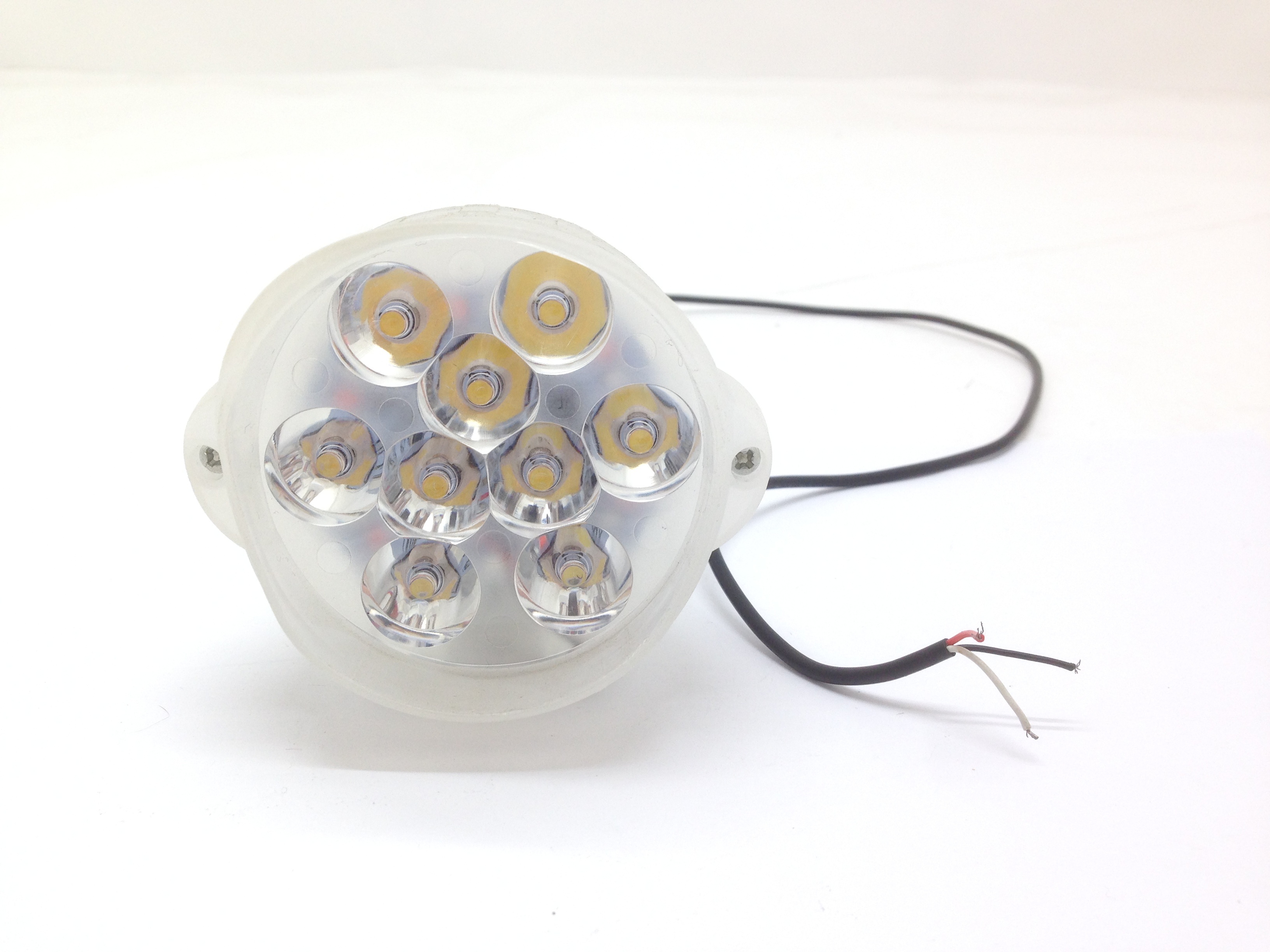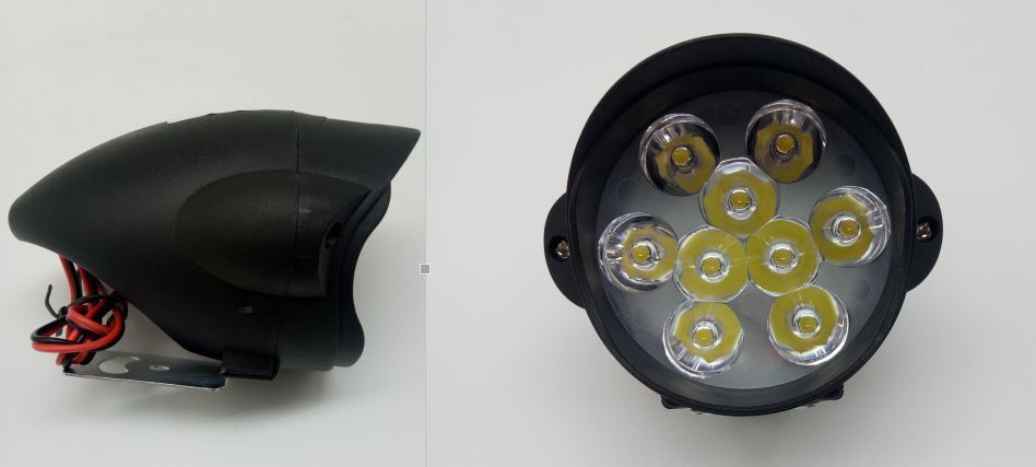 摩托车大灯12灯36W塑壳银色固定支架3030灯珠白光常亮12V2线