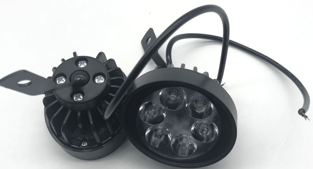 摩托车大灯4灯12W铝壳银色万向支架3030灯珠白光常亮12V2线