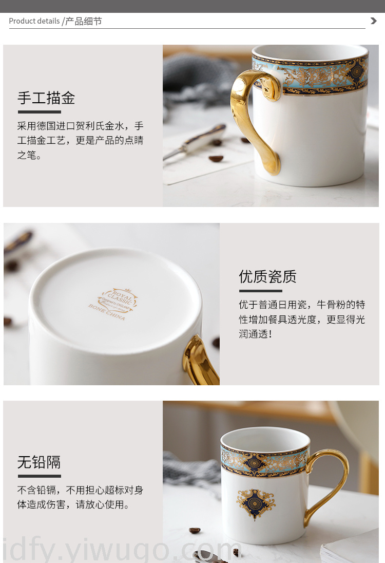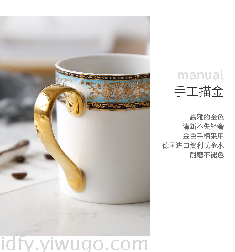 描金欧式骨瓷马克杯带勺子创意陶瓷咖啡杯办公室水杯 投诉