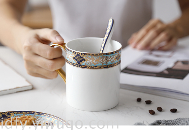 描金欧式骨瓷马克杯带勺子创意陶瓷咖啡杯办公室水杯
