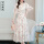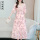 天好服饰气质雪纺碎花收腰连衣裙女遮肚显瘦夏天过膝长裙减龄洋气