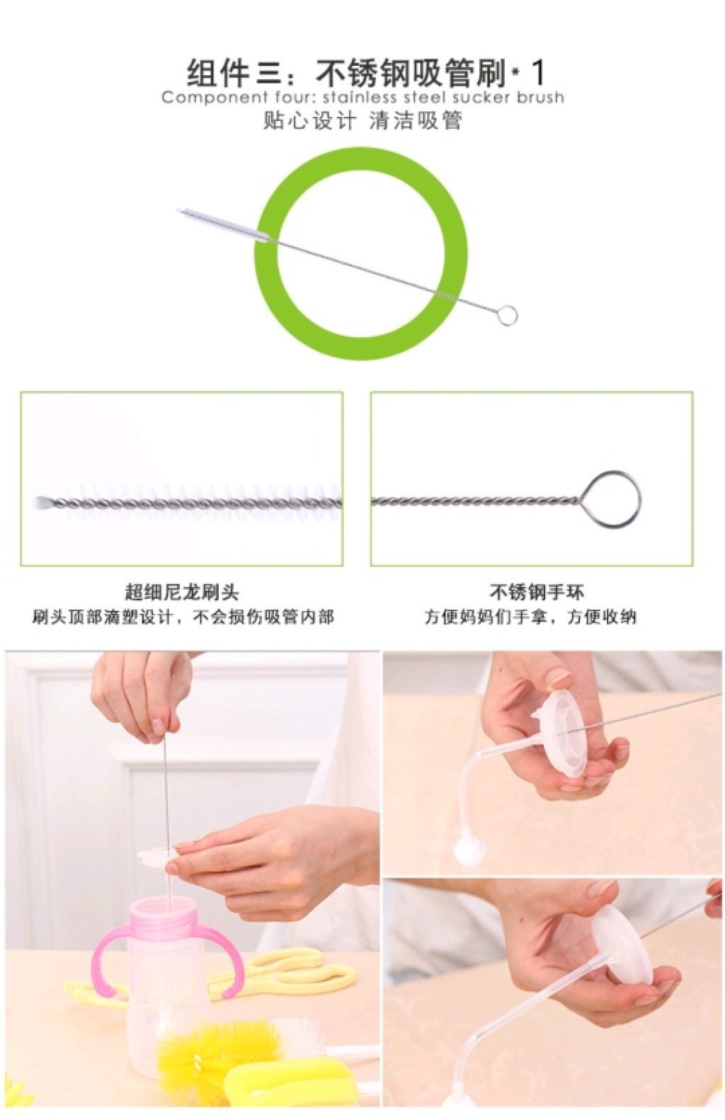 奶瓶刷多功能旋尼龙奶瓶奶嘴刷吸管刷婴儿洗奶瓶刷子Bottle brush 投诉