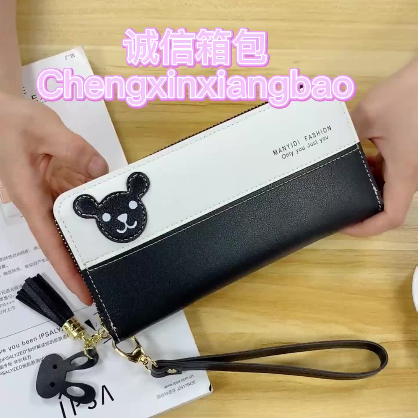 箱包精品女包潮流女包厂家定制钱包女小熊拼接钱包手拿包PU手机包 English | 投诉