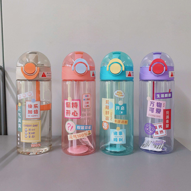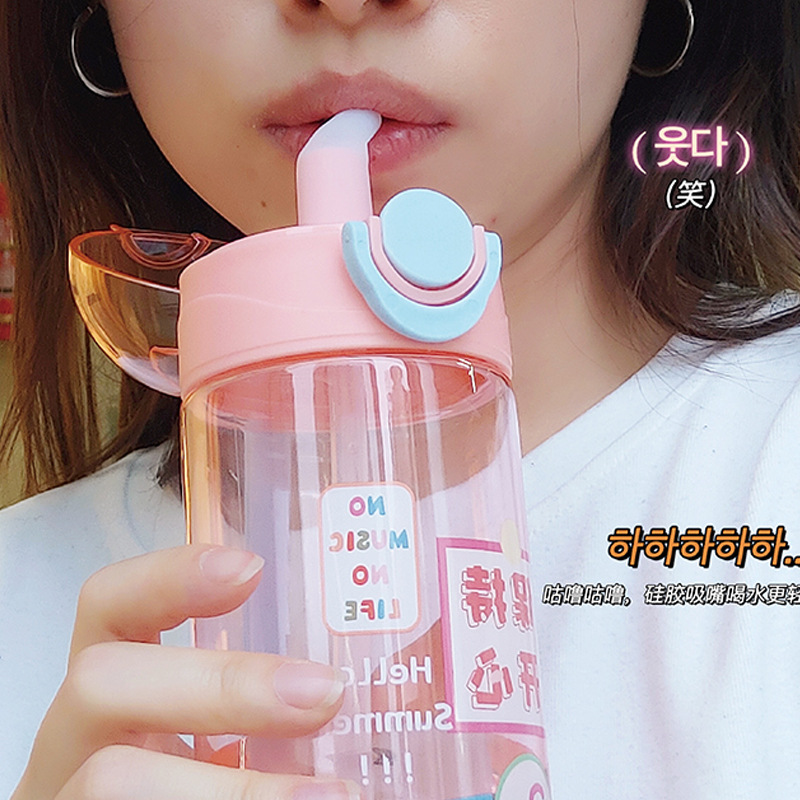 日系可爱元气随行杯锁扣弹盖吸管杯ins学生少女心卡通塑料水杯子 English | 投诉