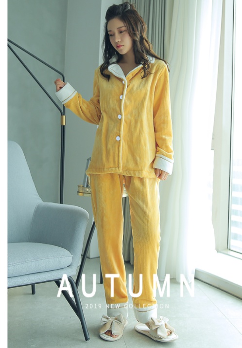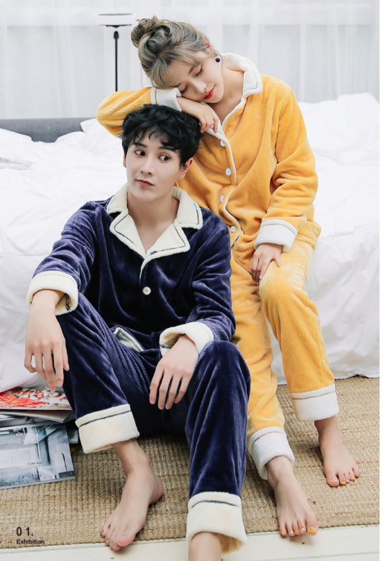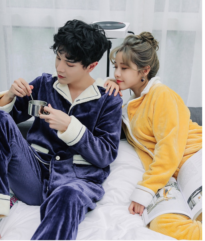 情侣睡衣秋冬法兰绒小翻领家居服开衫套装条纹情侣男女珊瑚绒 投诉