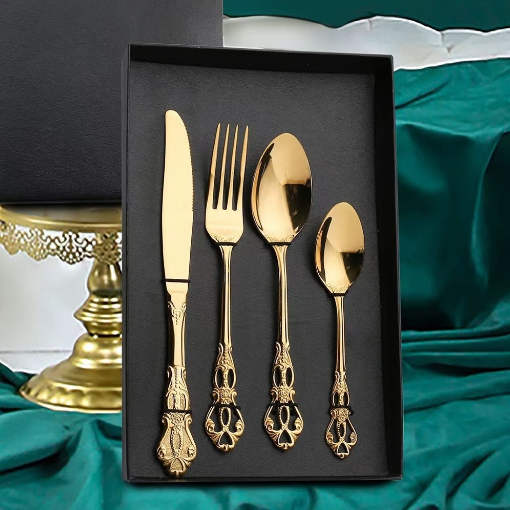 跨境爆款不锈钢餐具24件套装镀钛4件套礼盒西餐刀叉勺套装