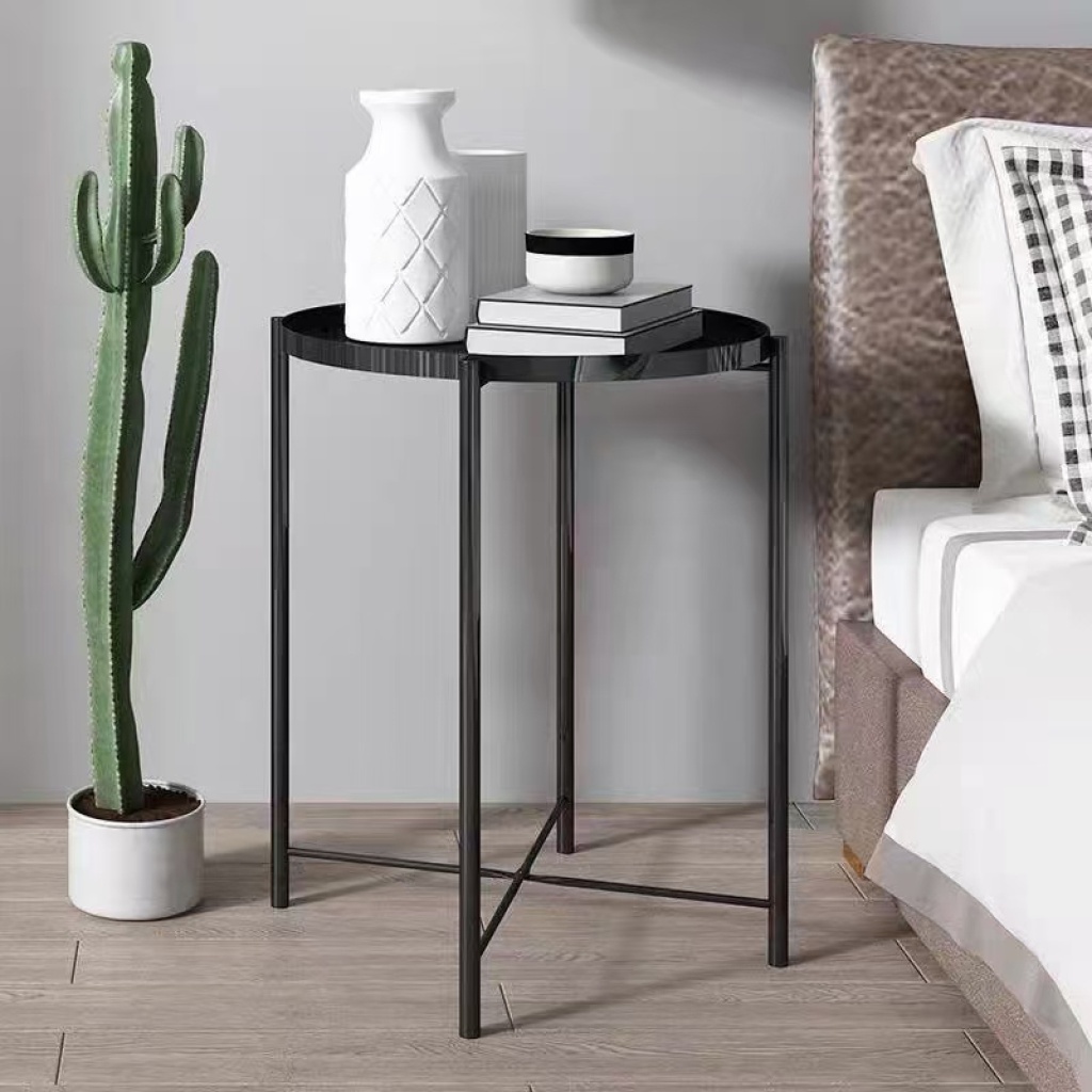 北欧简约床头小茶几铁艺阳台花架网红边几角几卧室飘窗ins小圆桌
