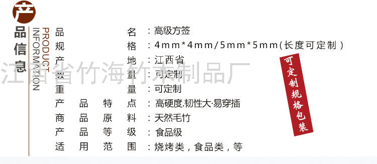 当季毛竹, 颜色鲜亮干净。竹签韧性好,不易折断。