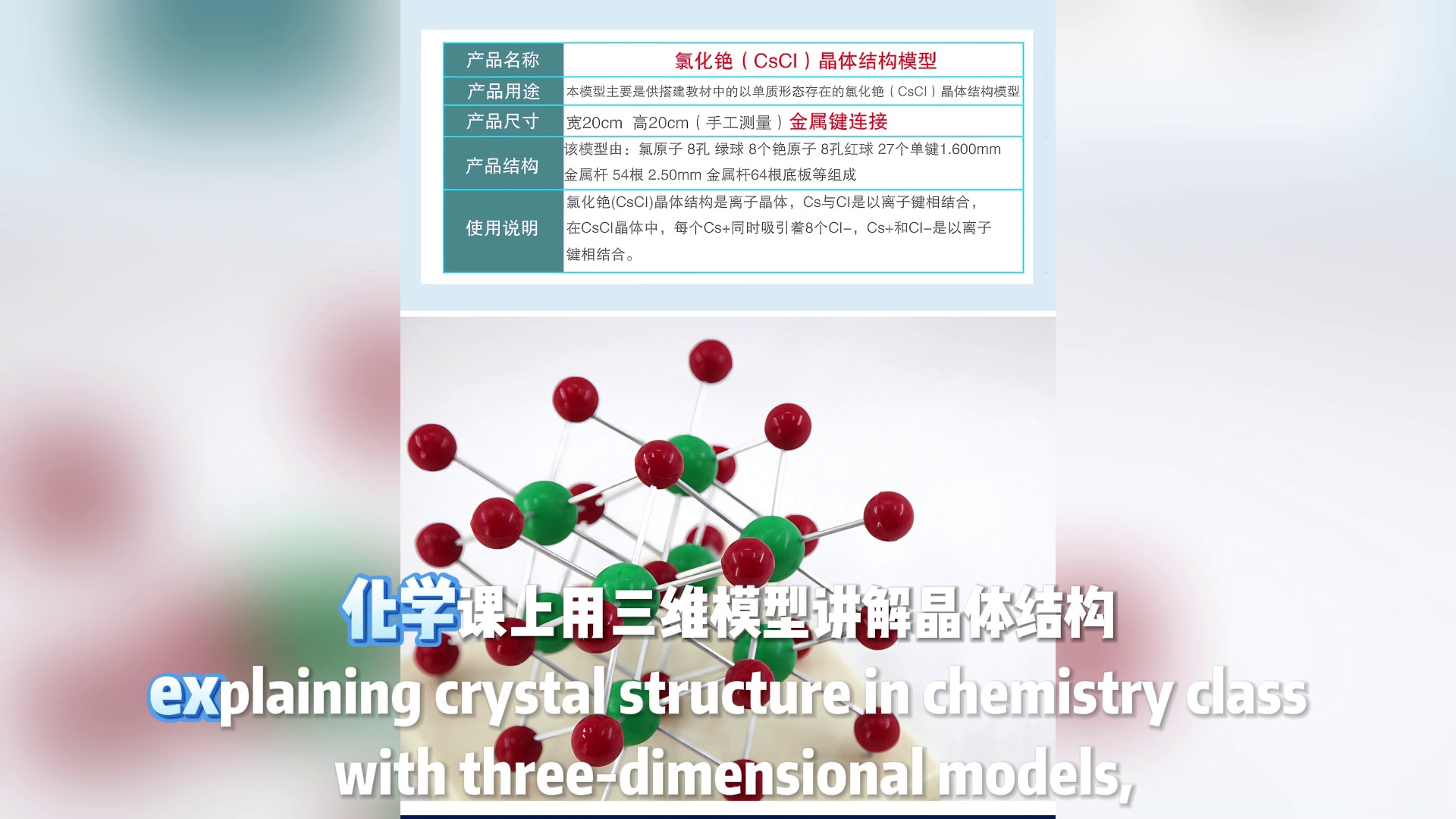 下单时需要重新确认交货时间!氯化铯晶体结构模型,金属连接组装款,专为初高中化学教学设计。