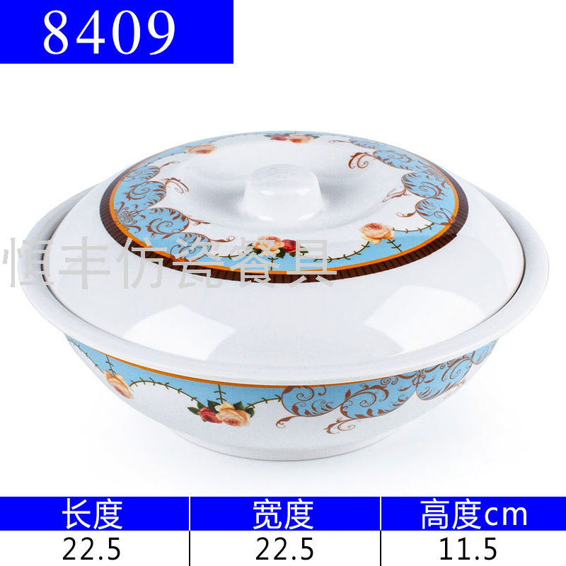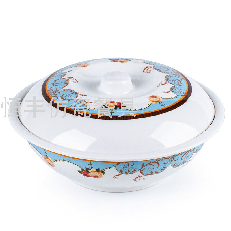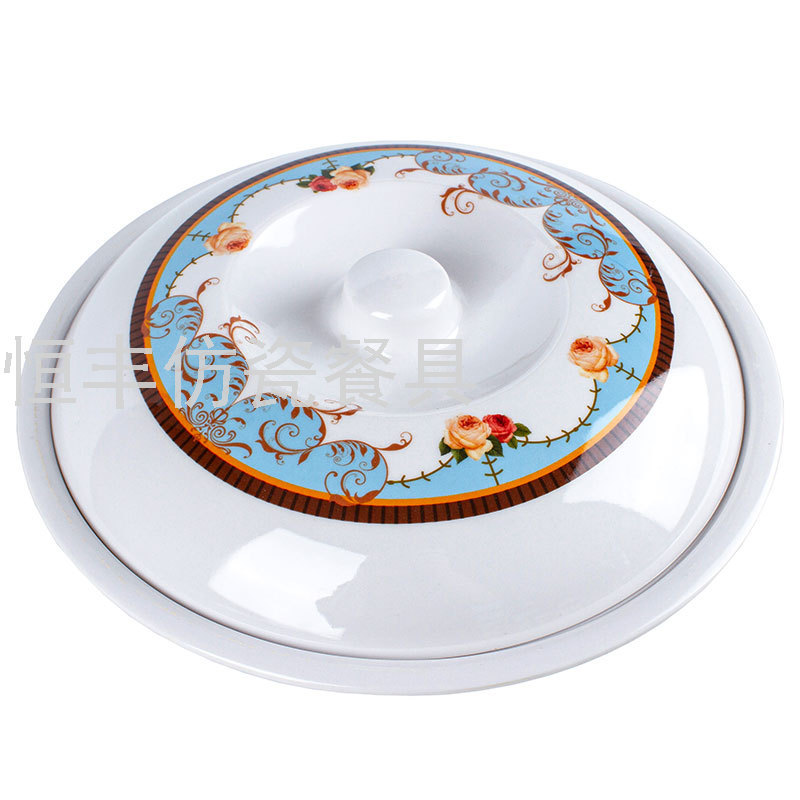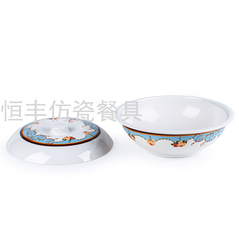 出口贴花白色有盖子圆形盖碗系列美耐皿密胺餐具外贸厂家