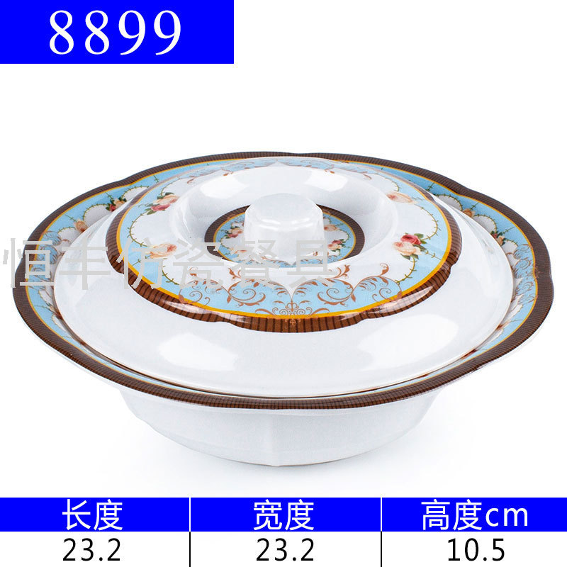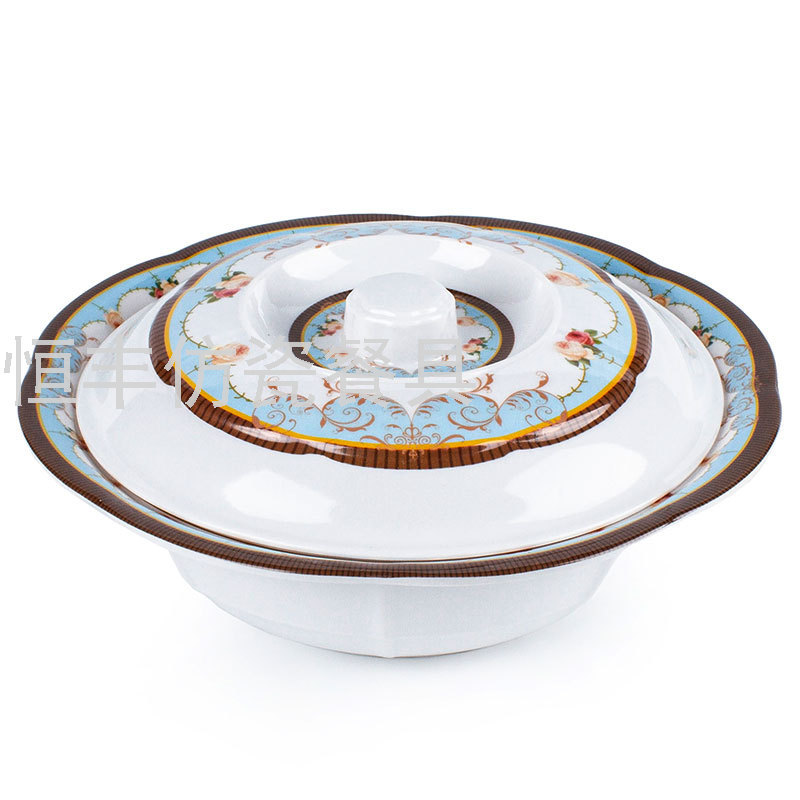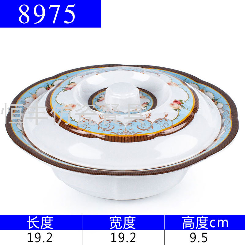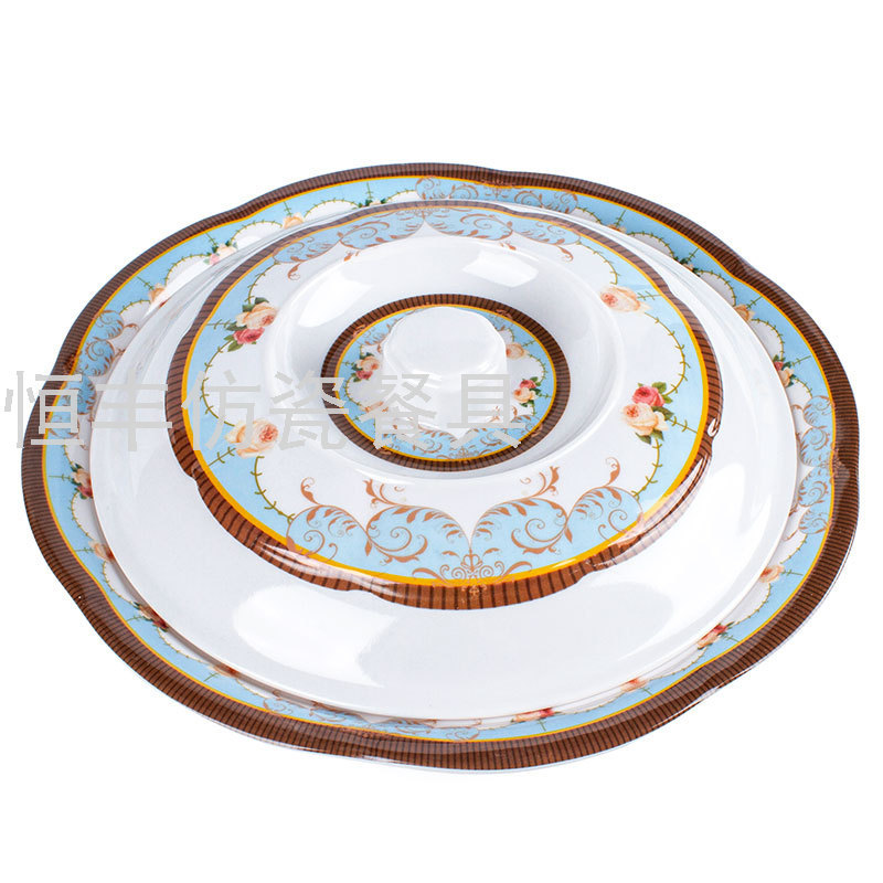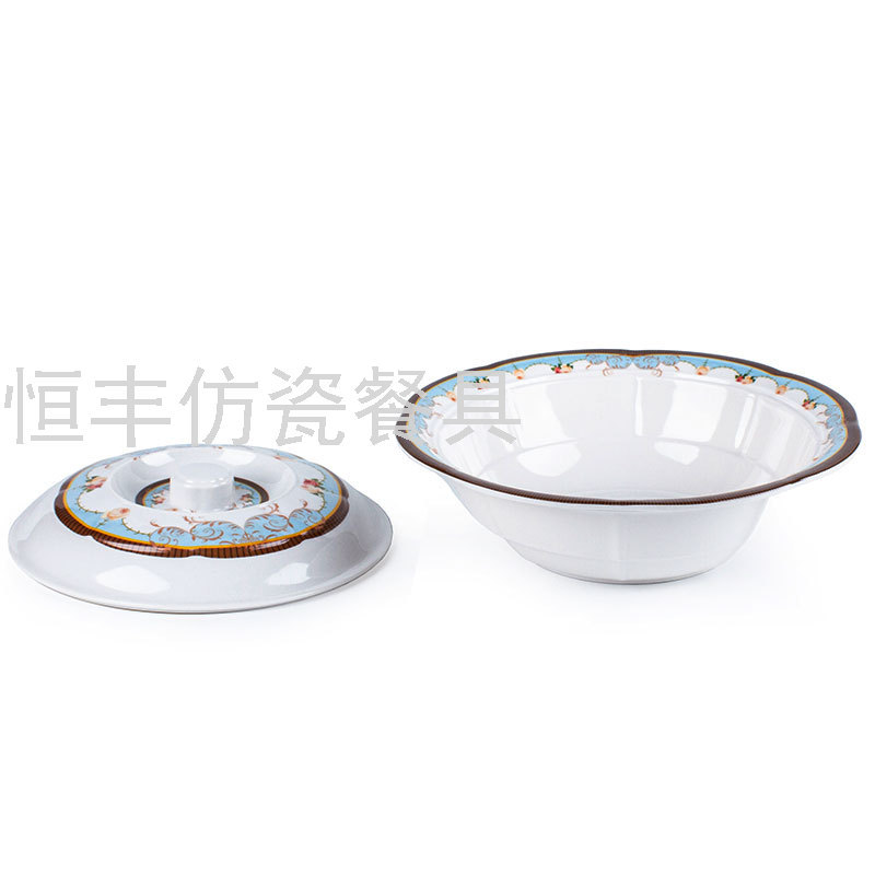 出口贴花白色有盖子圆形盖碗系列美耐皿密胺餐具外贸厂家