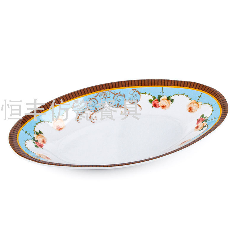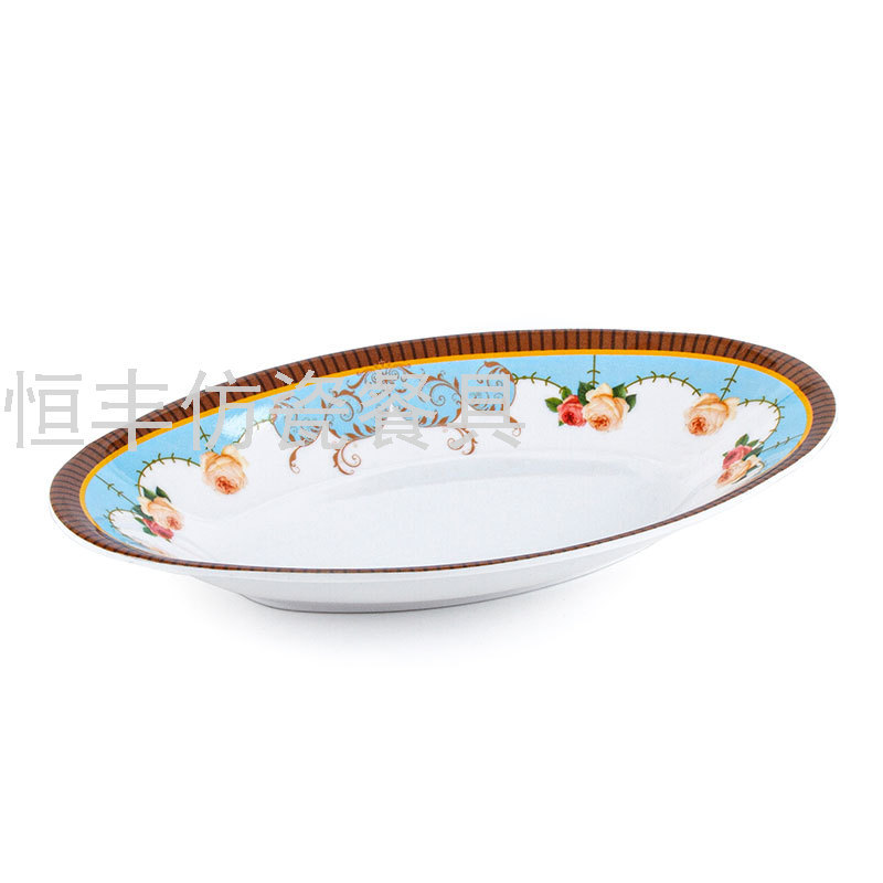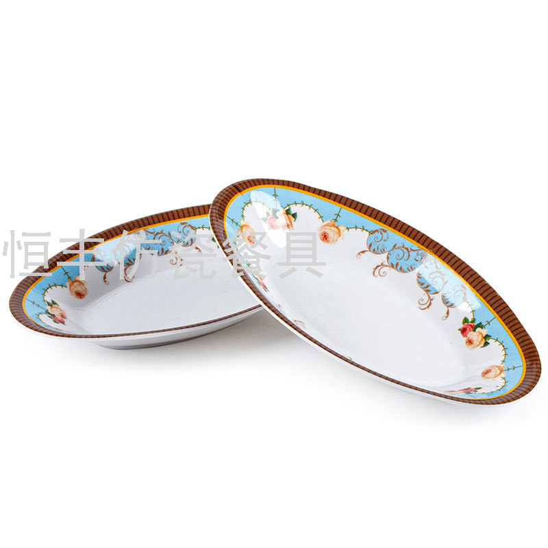 白色贴花包边椭圆形碟子印花盘子密胺餐具美耐皿外贸出口厂家