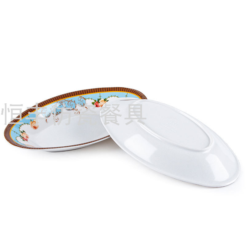 白色贴花包边椭圆形碟子印花盘子密胺餐具美耐皿外贸出口厂家 投诉