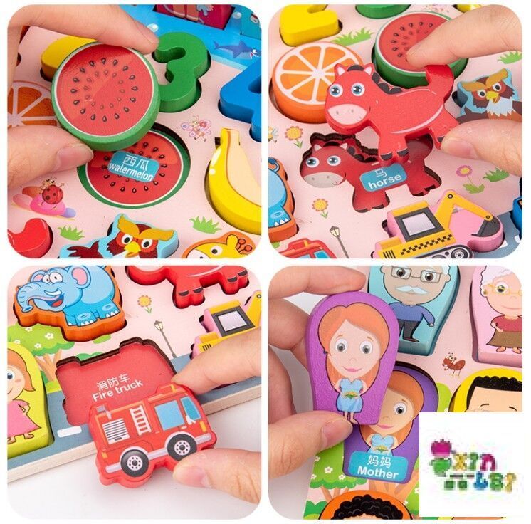 宝宝早教益智数字动物对数板立体拼图积木木质玩具 English | 投诉