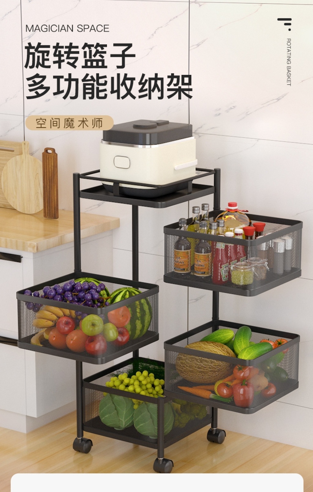 不锈钢厨房客厅圆形可旋转多层置物篮Round layer storage basket 投诉