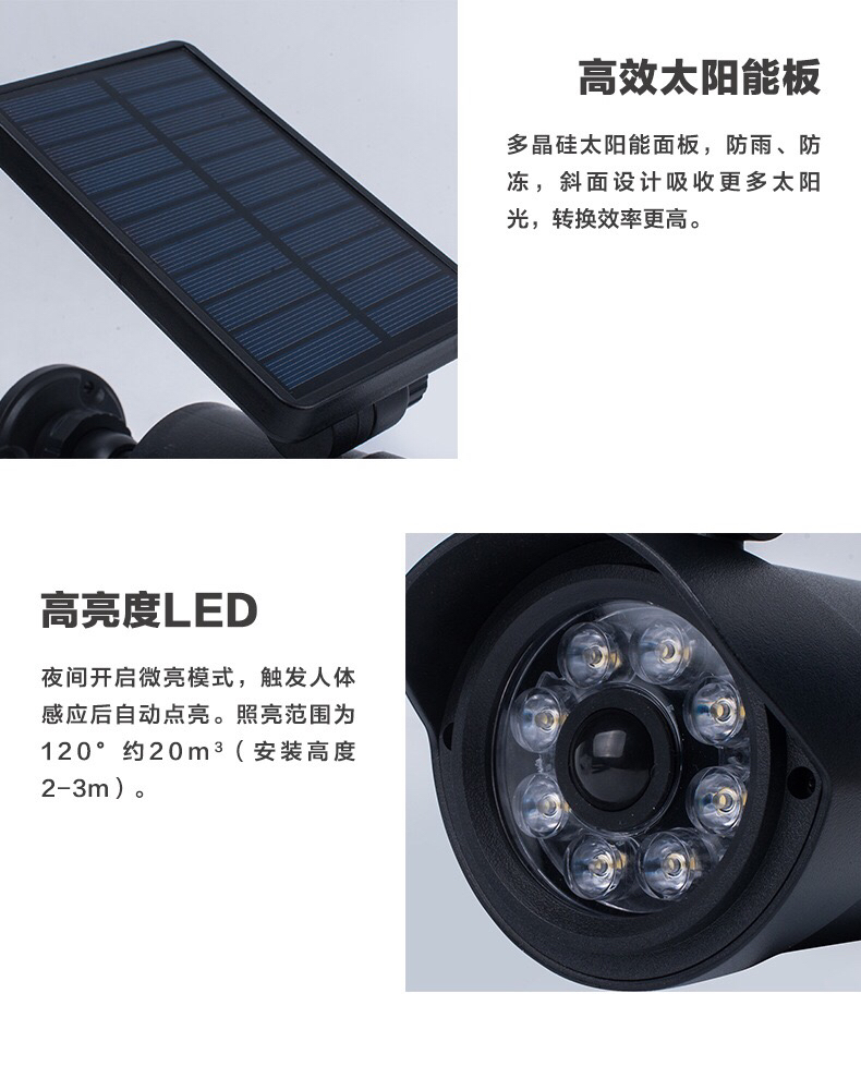 太阳能监控灯智能人体感应侦测伪装监控壁灯户外led仿真摄像路灯 投诉