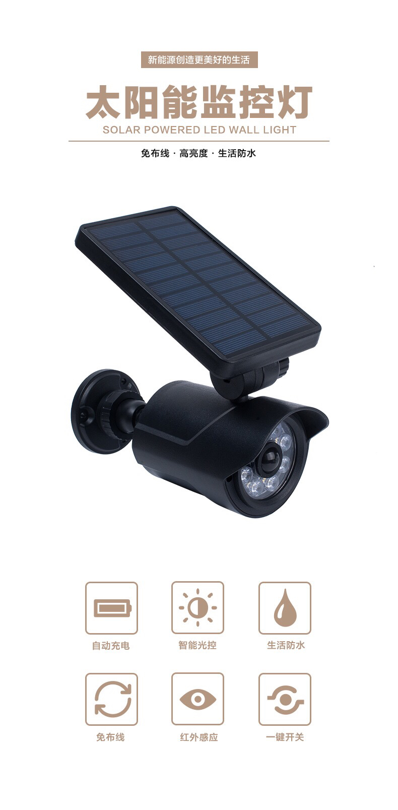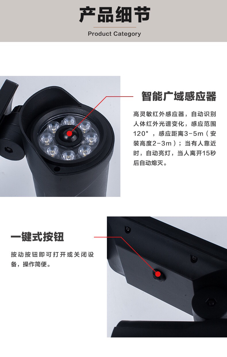 太阳能监控灯智能人体感应侦测伪装监控壁灯户外led仿真摄像路灯