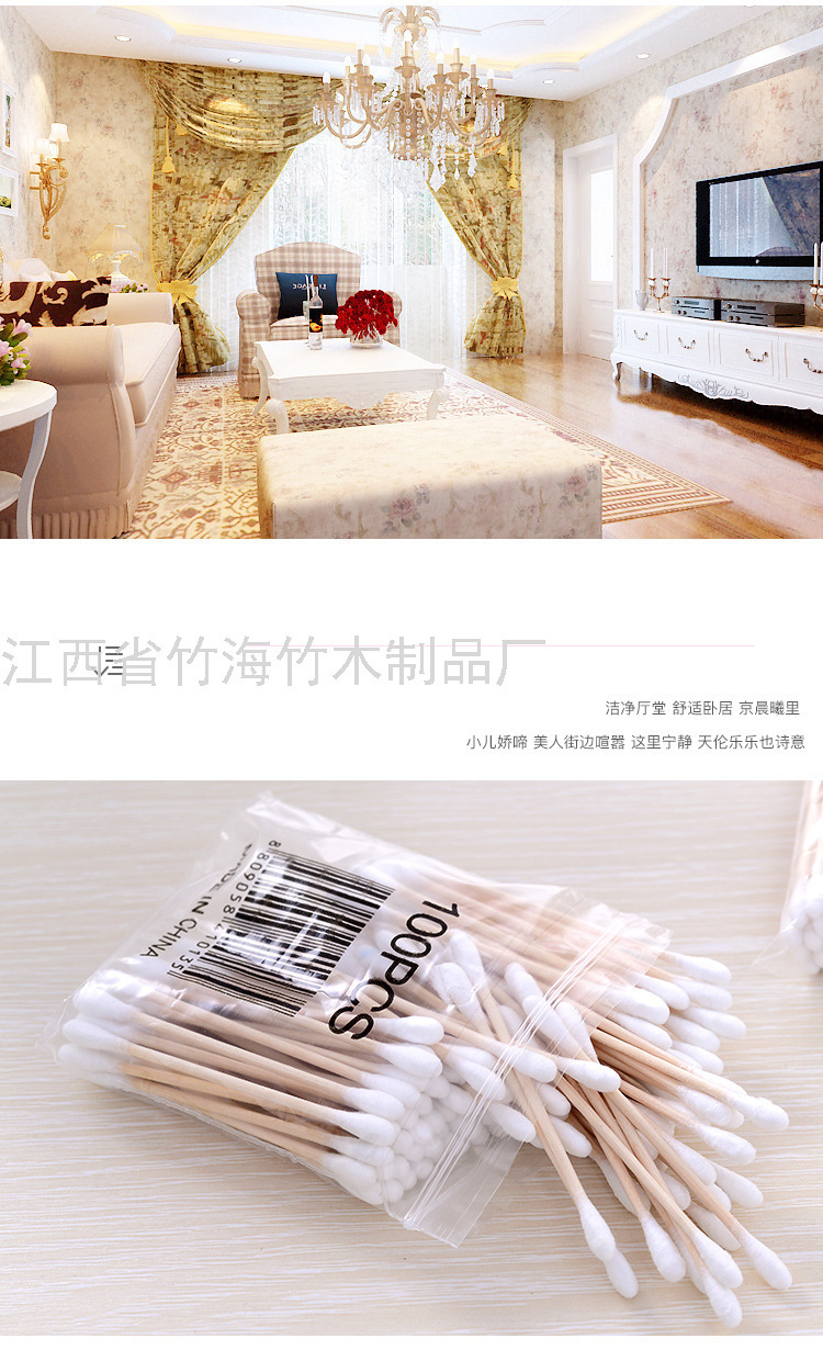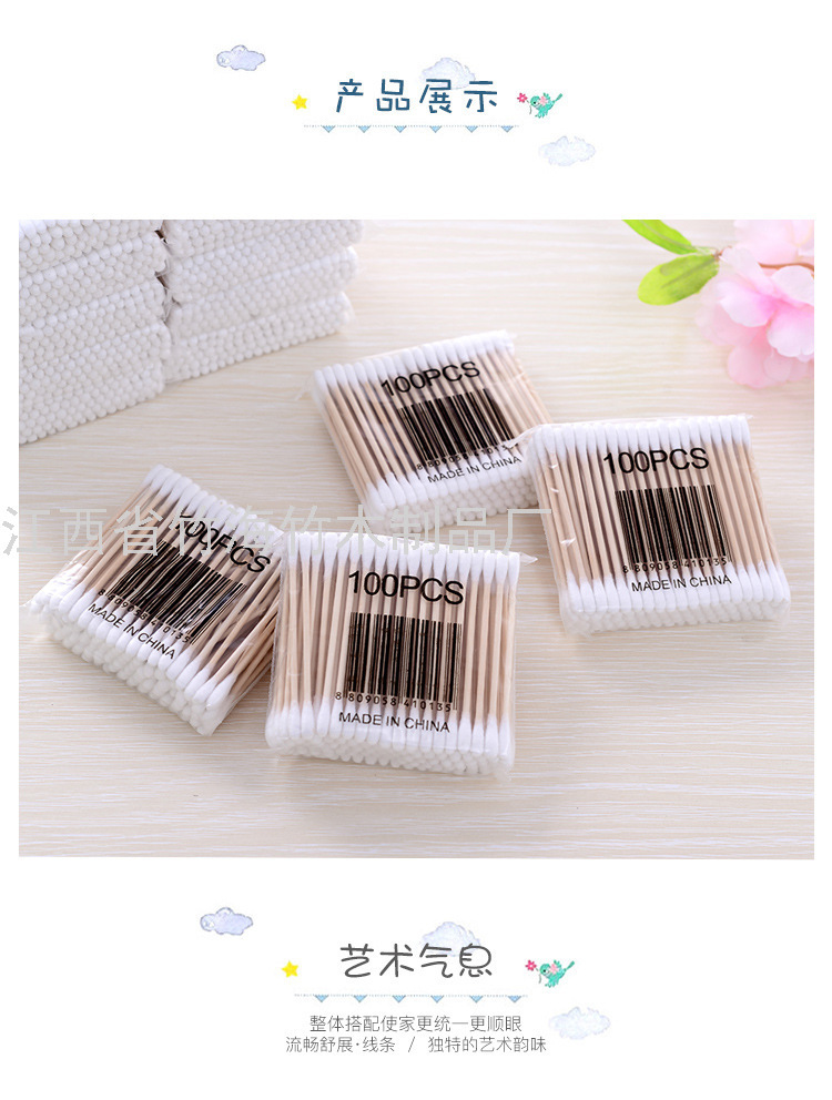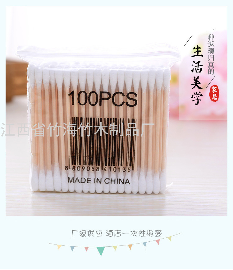 一次性卫生棉棒 软袋木棒双头棉签 化妆棉签足数100支装批发
