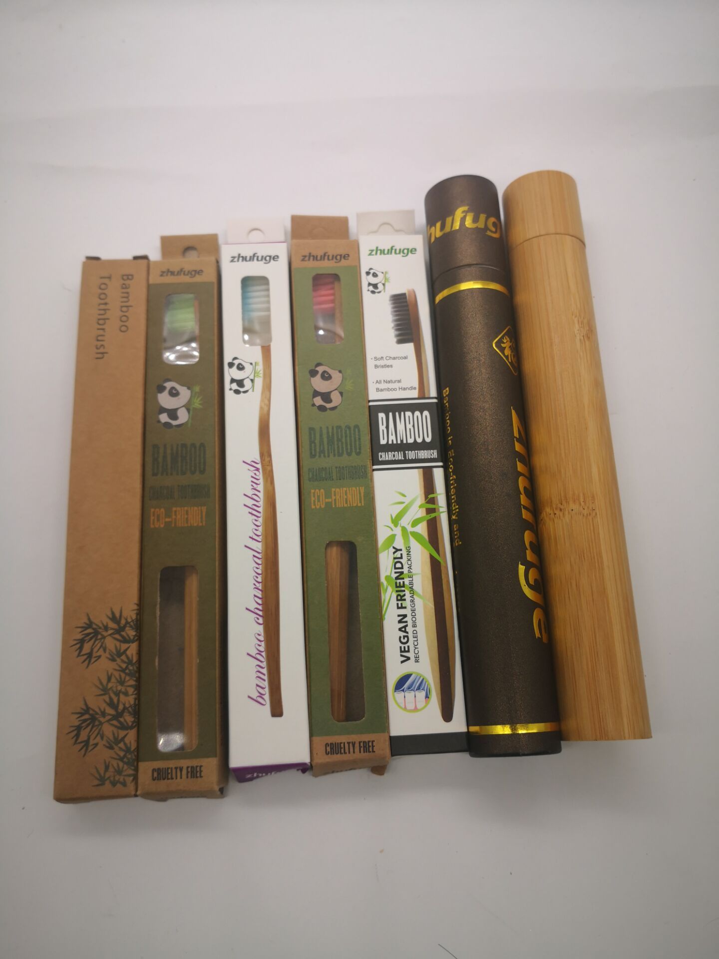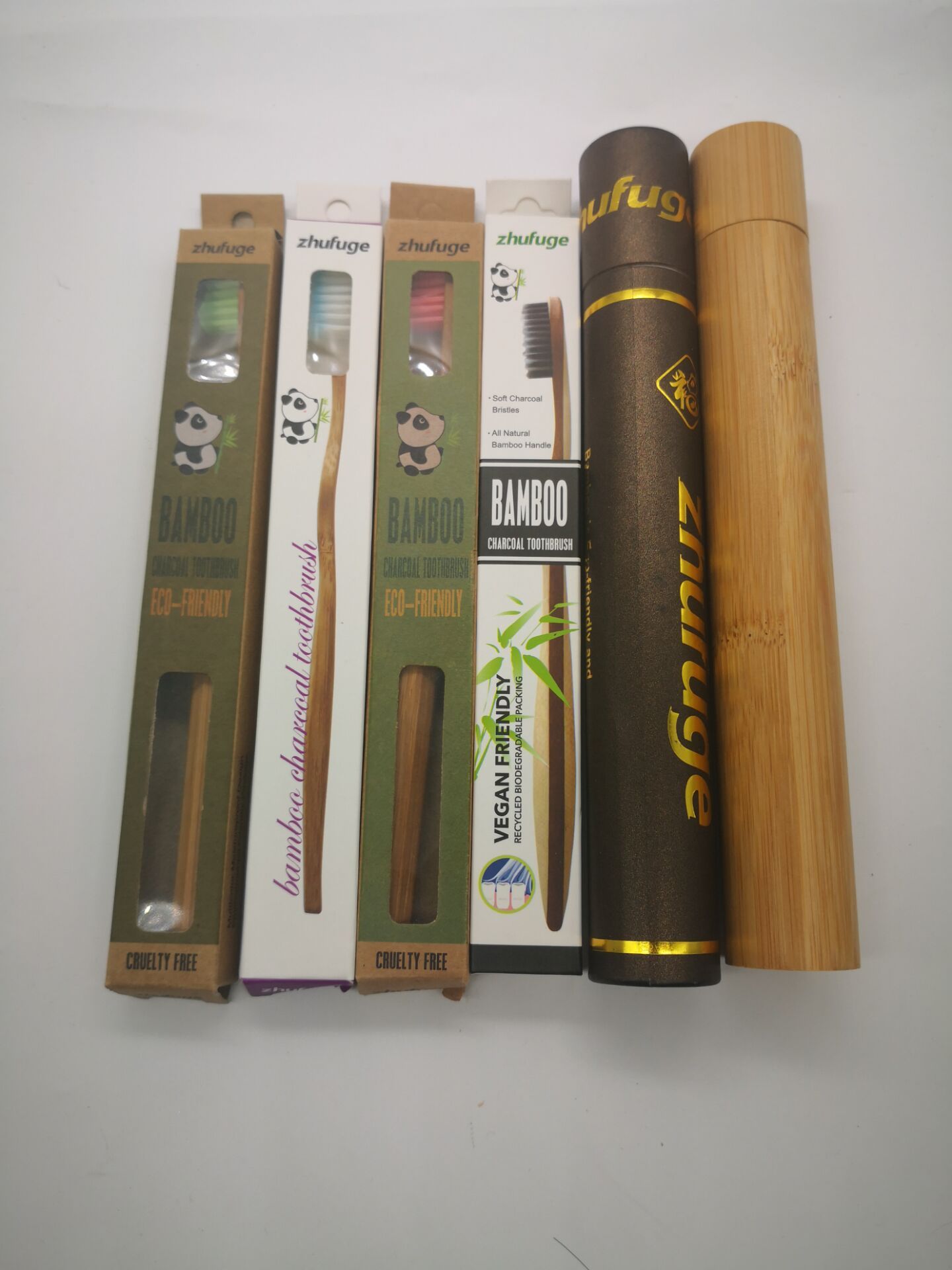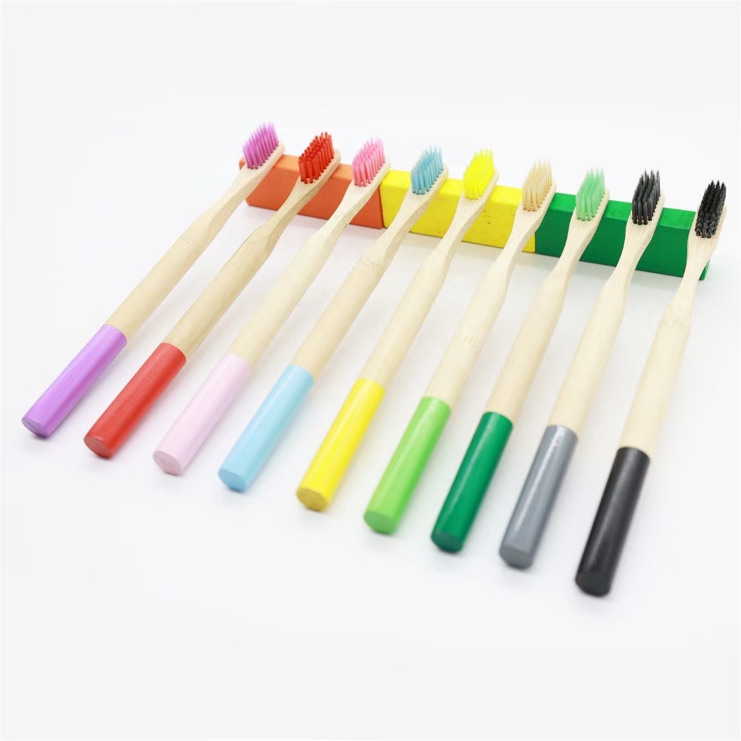 圆棒喷漆竹子牙刷 定制 多色竹牙刷可选口腔护理 竹制牙刷 套装